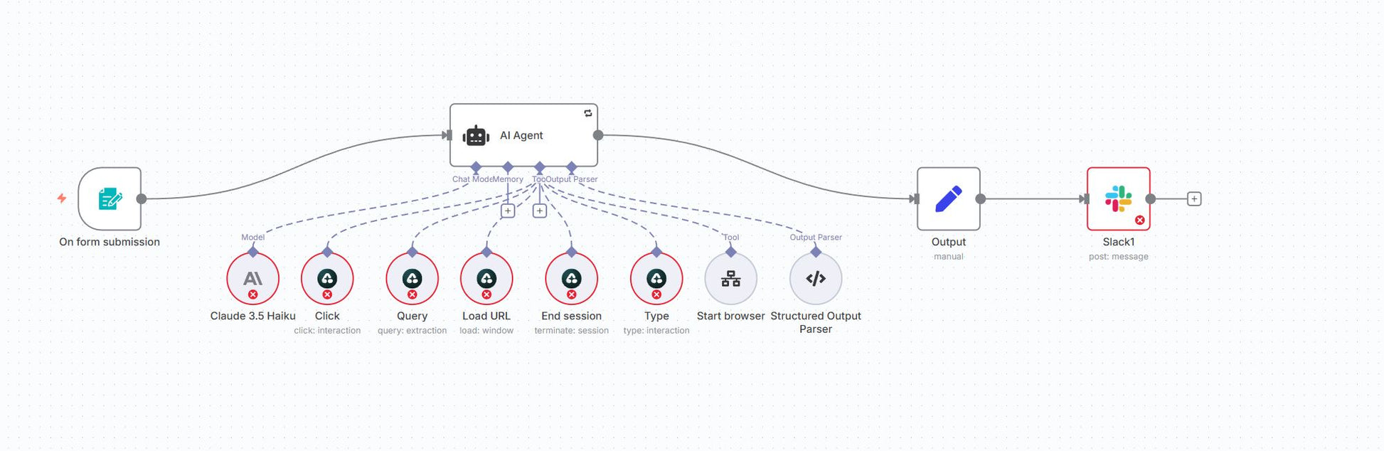 Slack Updates – Sends live view URLs and final output directly to your Slack channel.