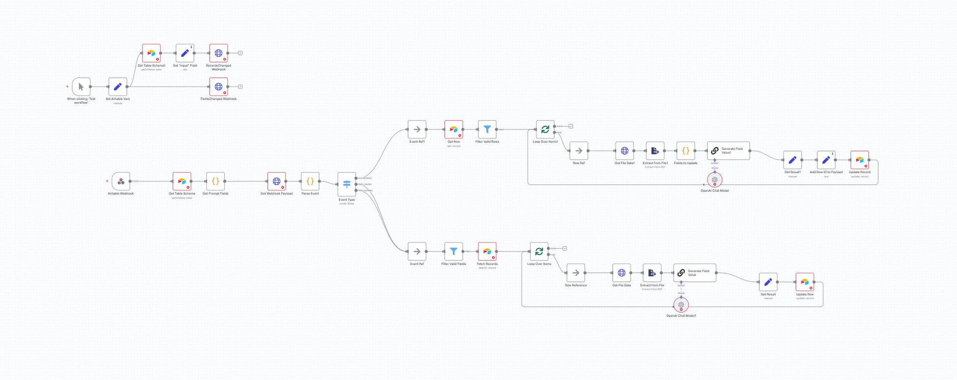 Traditionally, teams burn hours manually scanning PDFs and populating spreadsheets. This system automates that drudgery. It turns Airtable into a smart, self-updating database that reacts to schema changes in real time. New fields instantly become AI-powered extractors, giving teams agility and speed.