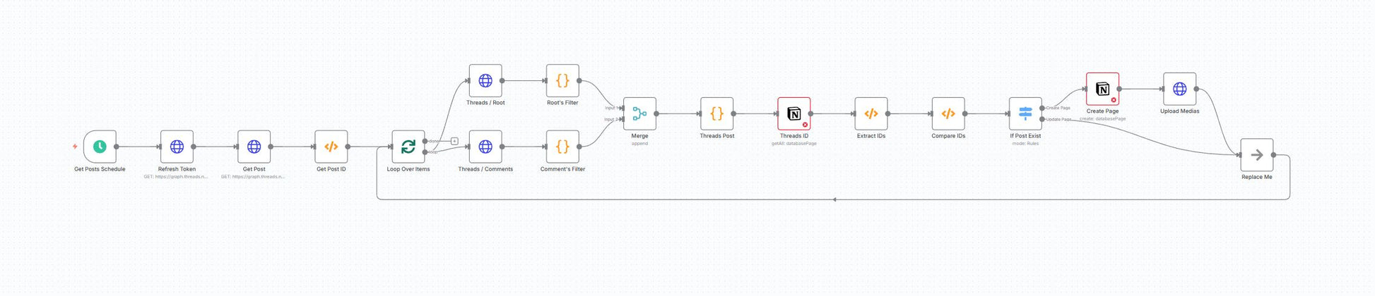 Hands-free archiving: Threads → Notion syncs automatically on schedule.